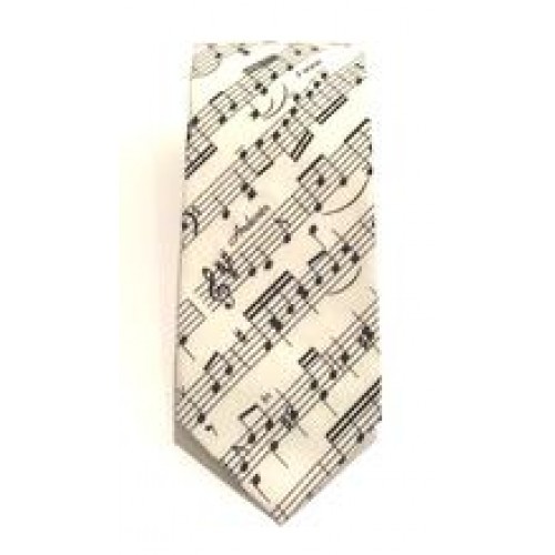 A beautifully crafted cotton novelty tie from Van Buck. This white tie features black sheet music all over. This necktie really is something extra special, perfect for a musician or for an all round fun guy who likes to wear his personality round his neck.